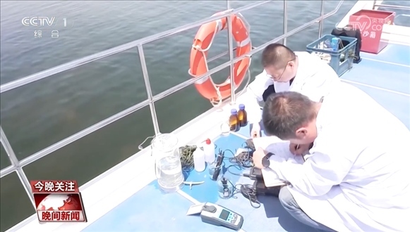 現(xiàn)場水樣監(jiān)測和分析顯示,水溫是32℃,PH是8.8,電導率是3.03,內(nèi)蒙古自治區(qū)環(huán)境監(jiān)測總站巴彥淖爾分站副站長賈國慶介紹,PH和溶解氧都在合理值。