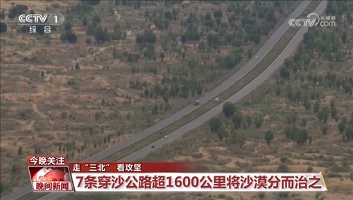那要如何提高沙漠的治理效率呢?在鎖邊林的中間,這一條條穿越沙漠的公路,叫做穿沙公路,在庫布其,一共有7條,全長超過1600公里的穿沙公路,人流、物流通過公路進入沙漠深處,而蓬勃綠色也隨著公路向外延伸。