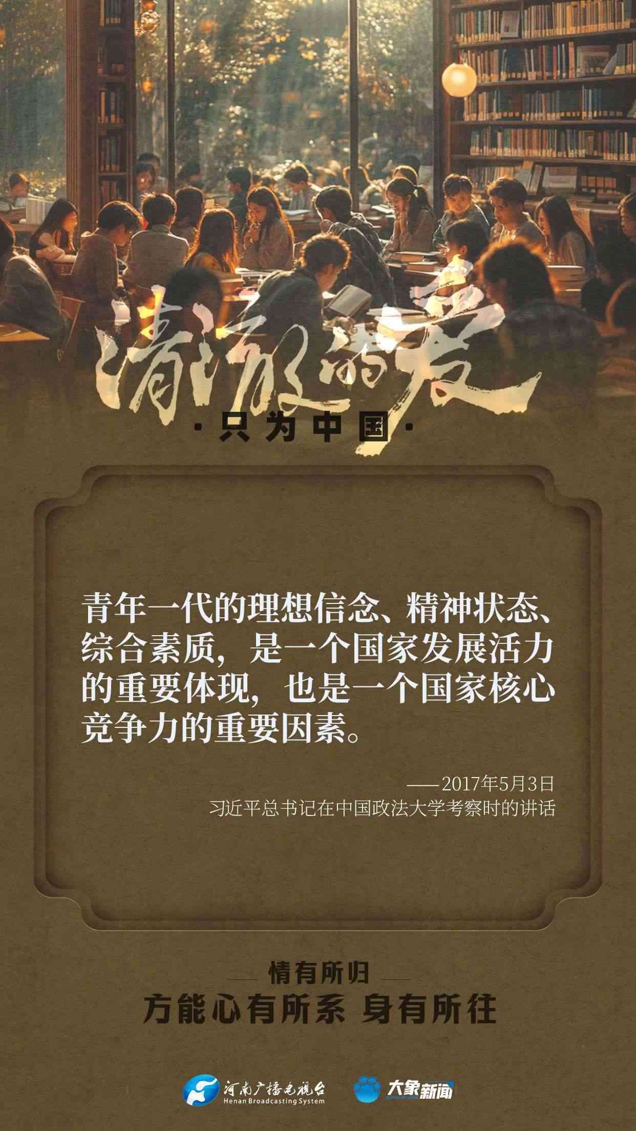 習(xí)近平總書記對廣大青年寄予厚望。黨的十八大以來,他多次來到青年中間,同大家談人生、話理想,鼓勵青年人心系祖國,志存高遠,腳踏實地,在奮斗中創(chuàng)造精彩人生,為祖國和人民貢獻青春和力量。
