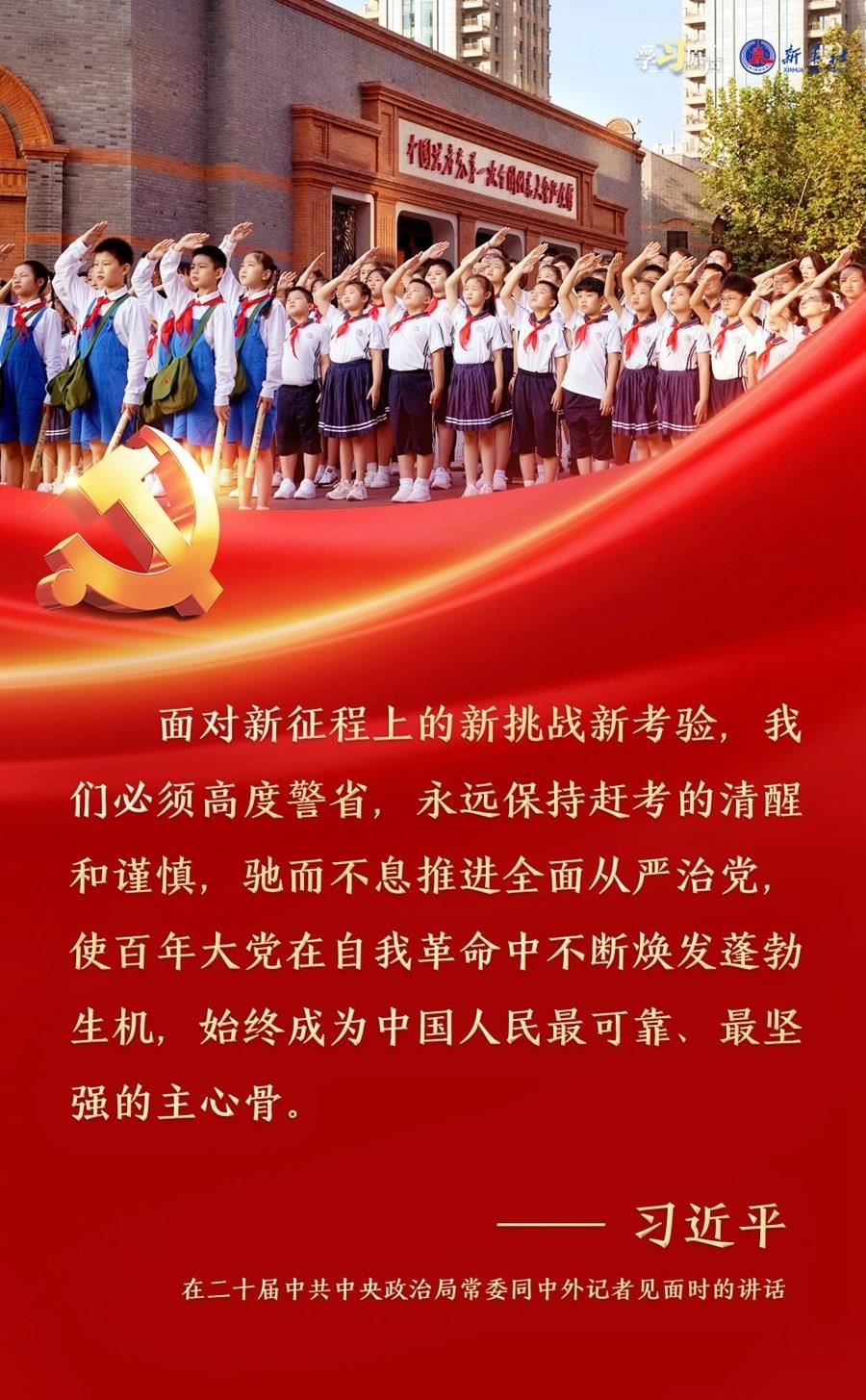 習(xí)近平總書記強(qiáng)調(diào),面對新征程上的新挑戰(zhàn)新考驗,我們必須高度警省,永遠(yuǎn)保持趕考的清醒和謹(jǐn)慎,馳而不息推進(jìn)全面從嚴(yán)治黨,使百年大黨在自我革命中不斷煥發(fā)蓬勃生機(jī),始終成為中國人民最可靠、最堅強(qiáng)的主心骨。