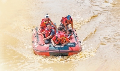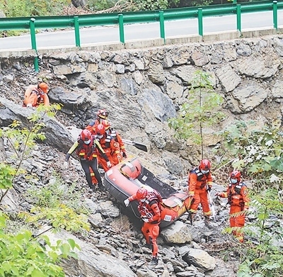 湖北省消防救援總隊(duì)前突小組黨員突擊隊(duì)在陜西省商洛市腰坪水庫(kù)開展搜救。圖為消防救援人員運(yùn)送橡皮艇至作業(yè)水域。亓玉昆 李偉男攝影報(bào)道