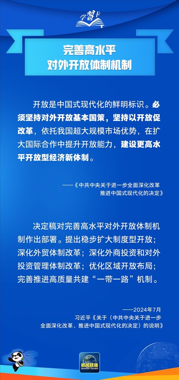 今年7月,黨的二十屆三中全會(huì)審議通過(guò)《中共中央關(guān)于進(jìn)一步全面深化改革 推進(jìn)中國(guó)式現(xiàn)代化的決定》。這份綱領(lǐng)性文件明確提出,“完善高水平對(duì)外開(kāi)放體制機(jī)制”。