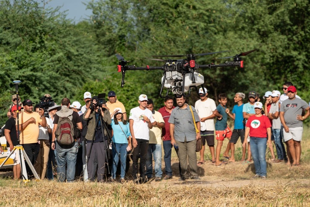 2024年2月2日,中巴農(nóng)業(yè)機(jī)械化合作示范項(xiàng)目啟動(dòng)儀式在巴西阿波迪舉行,第一批來(lái)自中國(guó)7家農(nóng)機(jī)企業(yè)共31臺(tái)(件)設(shè)備正式交付給巴西農(nóng)村勞動(dòng)者組織。這是人們觀看一款中國(guó)生產(chǎn)的農(nóng)用無(wú)人機(jī)。