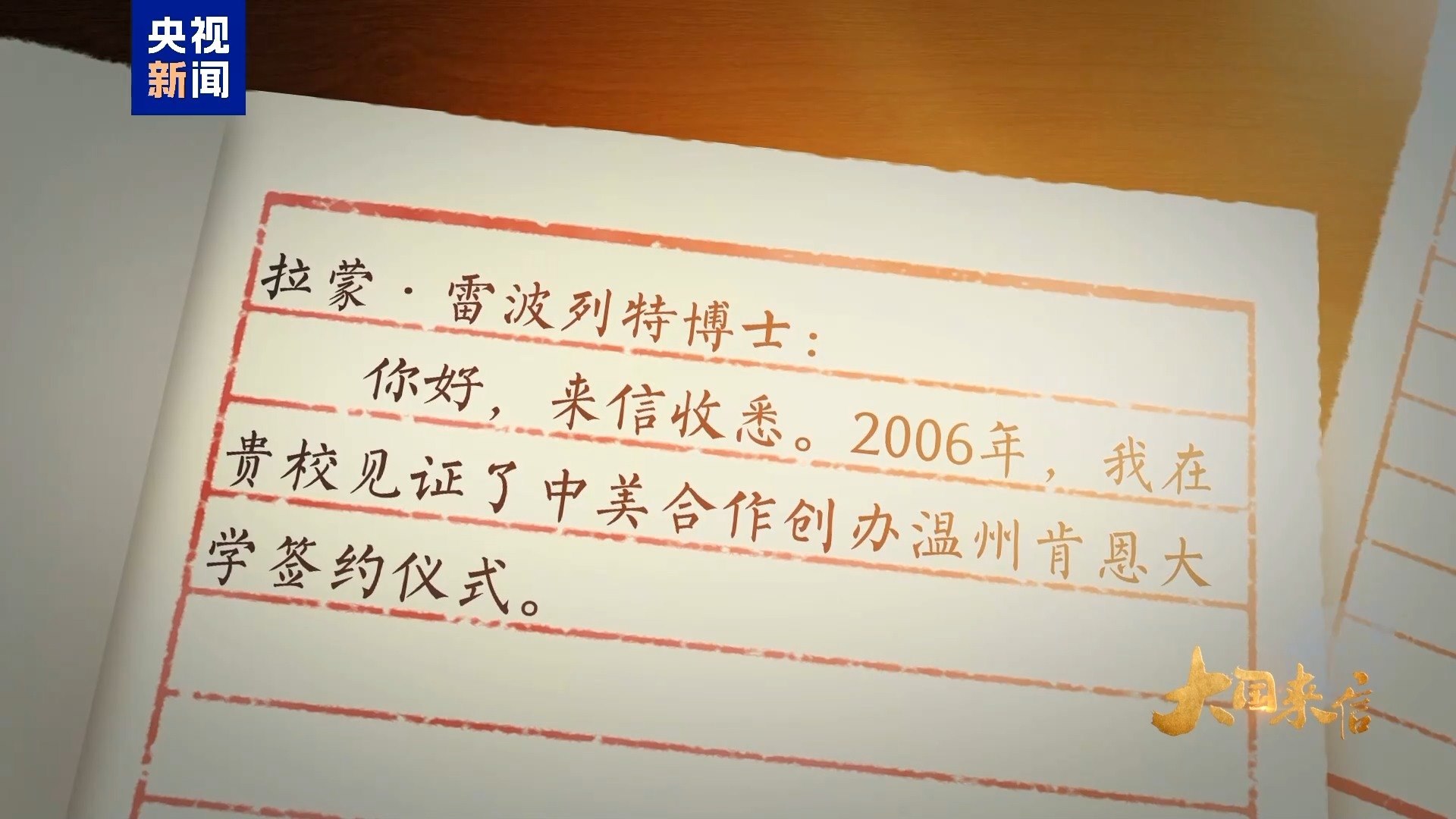 錦書云中來,尺牘傳深情。2006年,時任浙江省委書記習近平在美國肯恩大學見證了中美合作創(chuàng)辦溫州肯恩大學的簽約儀式。自2014年設(shè)立以來,溫州肯恩大學不僅培養(yǎng)了數(shù)千名中外學子,還推動了中美兩國青年一代的友好交流。去年6月,習主席復(fù)信美國肯恩大學校長拉蒙·雷波列特,鼓勵中美兩國高校加強交流合作,為促進中美友好貢獻力量。