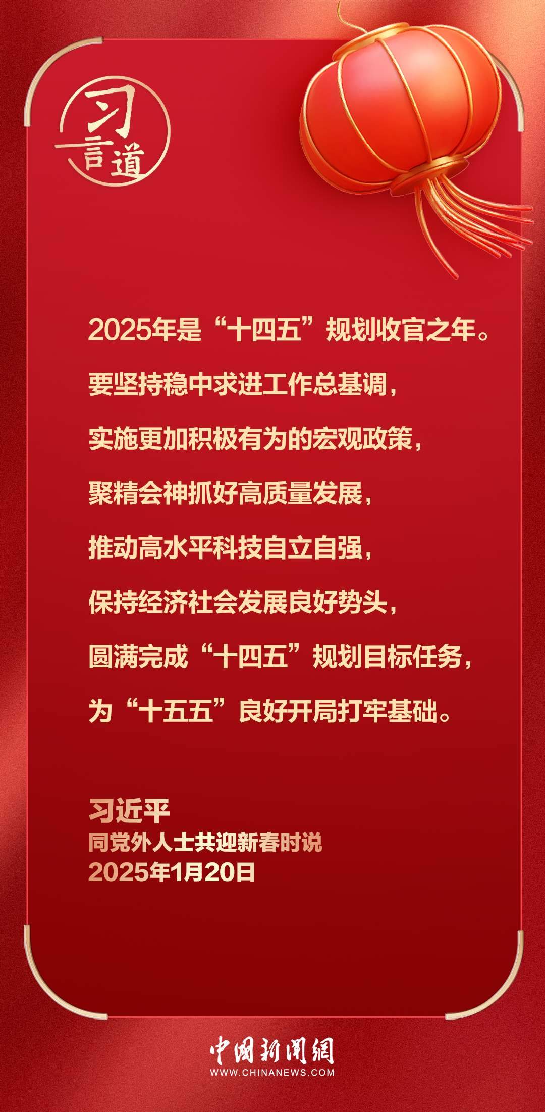 在中華民族傳統(tǒng)節(jié)日乙巳蛇年春節(jié)即將到來之際,中共中央總書記、國家主席、中央軍委主席習(xí)近平20日在人民大會堂同各民主黨派中央、全國工商聯(lián)負(fù)責(zé)人和無黨派人士代表歡聚一堂,共迎佳節(jié)。習(xí)近平代表中共中央,向各民主黨派、工商聯(lián)和無黨派人士,向統(tǒng)一戰(zhàn)線廣大成員,致以誠摯問候和新春祝福。