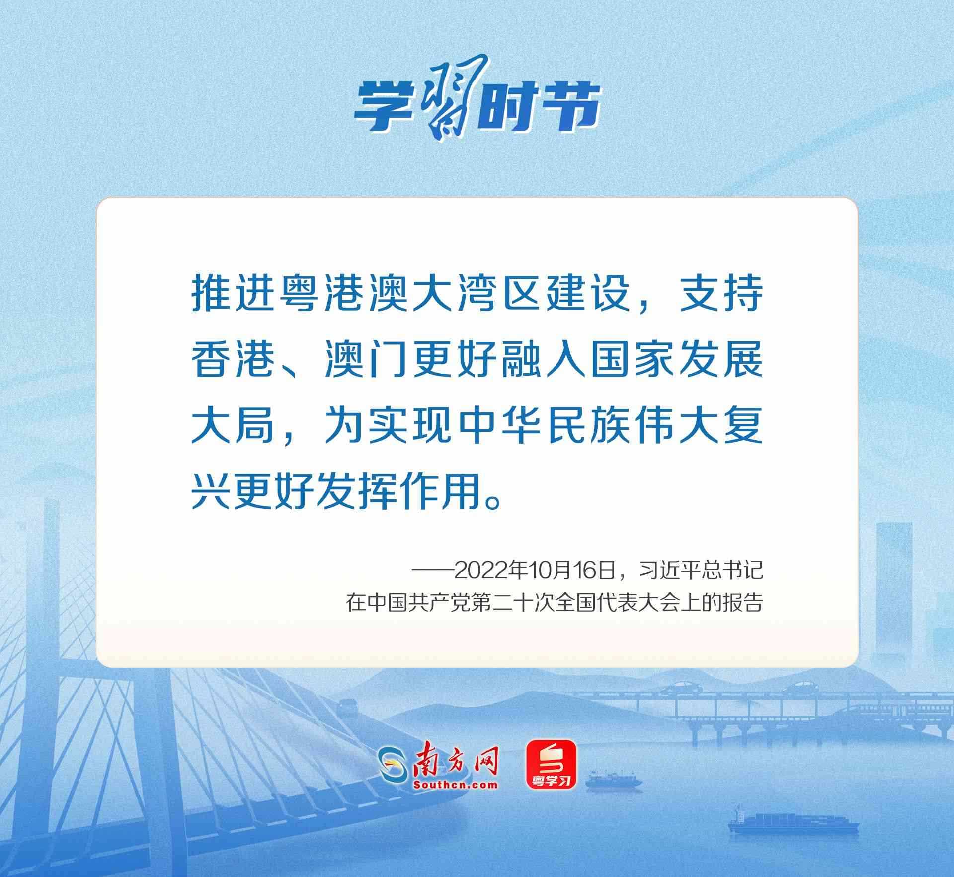 大灣區(qū),是大機遇、大文章,更是大未來。站在《粵港澳大灣區(qū)發(fā)展規(guī)劃綱要》發(fā)布6周年的新起點,粵港澳大灣區(qū)將沿著習近平總書記指明的方向,全力打造新發(fā)展格局的戰(zhàn)略支點、高質量發(fā)展的示范地、中國式現代化的引領地。