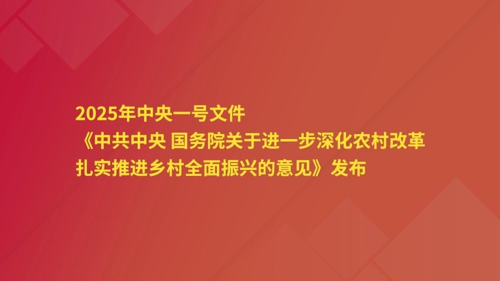 近日,2025年中央一號(hào)文件發(fā)布,這是中央一號(hào)文件連續(xù)第五年在標(biāo)題直接提到“鄉(xiāng)村振興”。