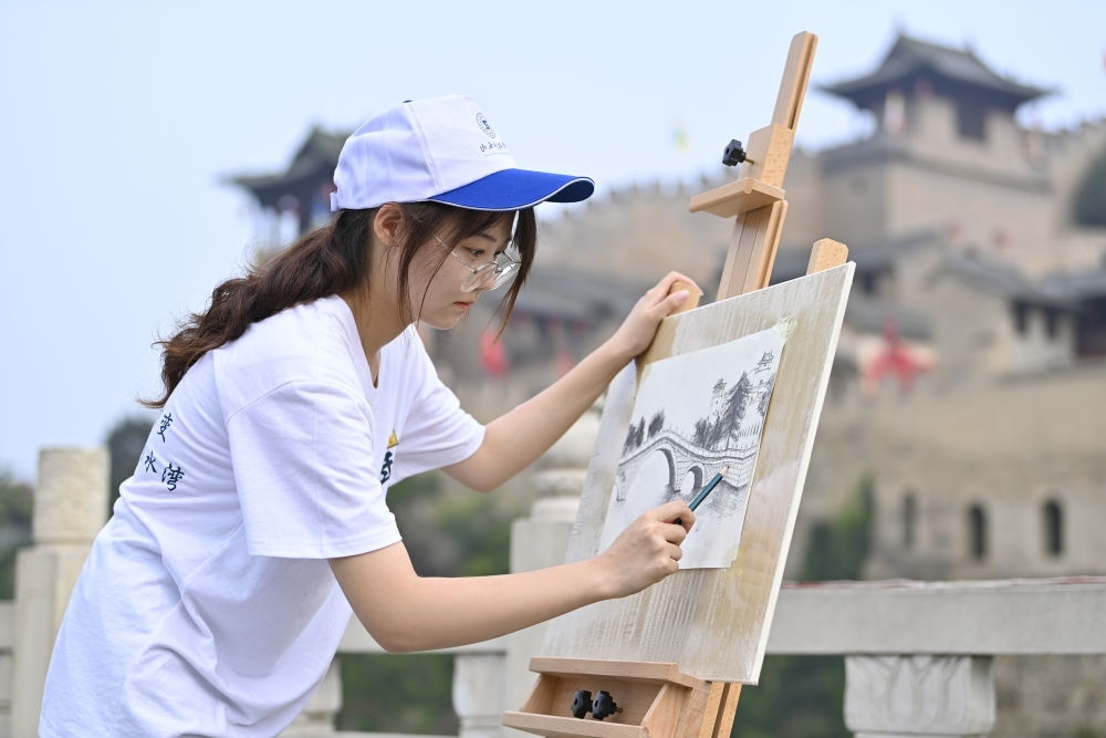 2024年7月10日,山西科技學院的學生在湘峪古堡寫生。