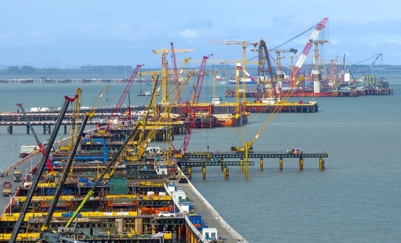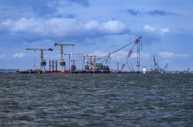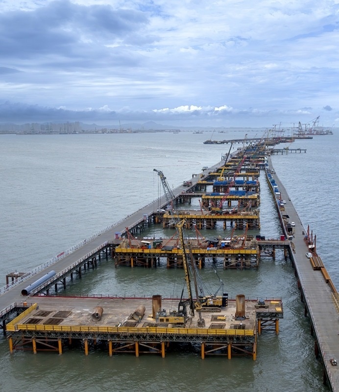 這是廈金大橋(廈門(mén)段)海上橋梁大規(guī)模裝配化施工現(xiàn)場(chǎng)(6月13日攝)。