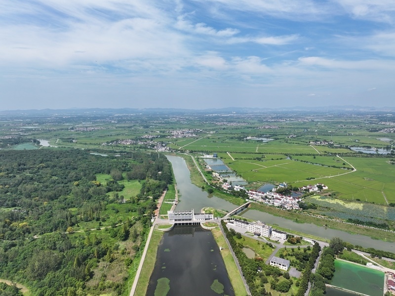9月15日拍攝的江蘇句容赤山湖灌溉工程灌區(qū)(無人機全景照片)。