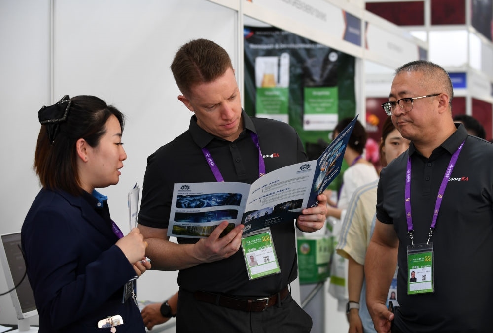 9月17日,在廣西南寧國際會展中心,人們在展覽現(xiàn)場交流。新華社記者 陸波岸 攝