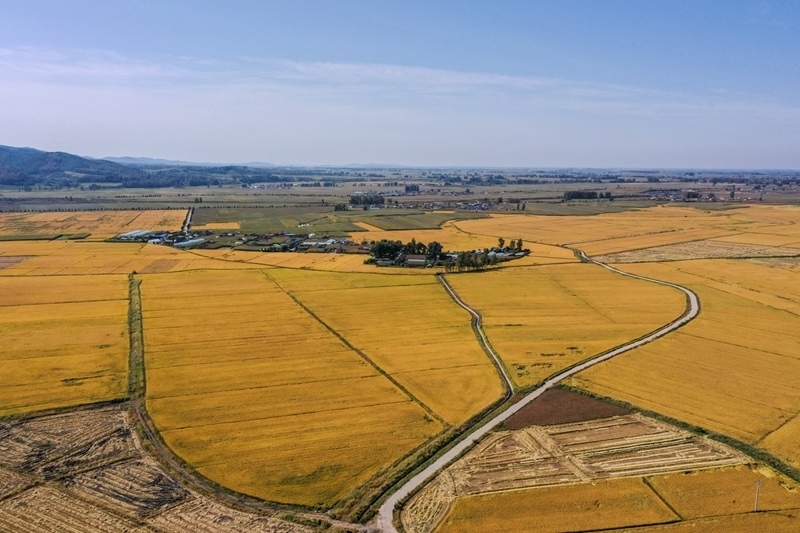這是9月23日在吉林省吉林市永吉縣岔路河鎮(zhèn)拍攝的農(nóng)田(無(wú)人機(jī)照片)。