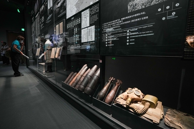 7月8日,在中國人民抗日戰(zhàn)爭紀(jì)念館《為了民族解放與世界和平》主題展覽上,參觀者在展示日本侵略者實施細(xì)菌戰(zhàn)和化學(xué)戰(zhàn)暴行的區(qū)域參觀。