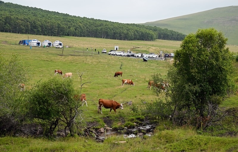 7月24日,自駕游客的車輛停泊在內(nèi)蒙古自治區(qū)赤峰市克什克騰旗草原的一處牧家樂。