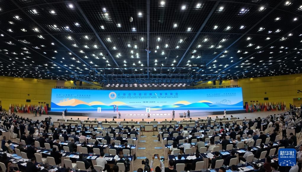 這是7月25日拍攝的上海合作組織媒體智庫峰會全體會議現場。新華社記者 郝源 攝