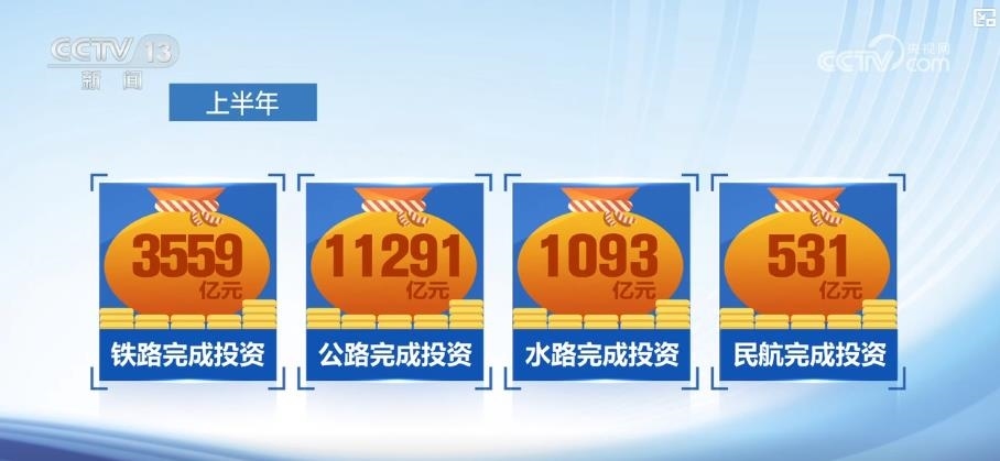 交通運(yùn)輸部數(shù)據(jù)顯示,上半年,我國完成交通固定資產(chǎn)投資16474億元,其中,鐵路、公路、水路、民航分別完成投資3559億元、11291億元、1093億元和531億元。