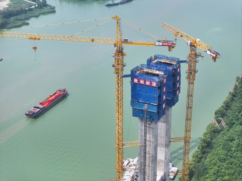 滬渝蓉高鐵跨京杭運河斜拉橋主塔封頂