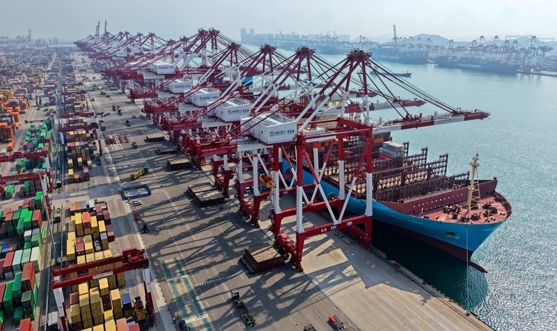 今年以來(lái),山東港口青島港外貿(mào)航線數(shù)量持續(xù)增加,截至7月底,新增13條集裝箱航線、4條件雜貨航線和5條海鐵聯(lián)運(yùn)線路。目前,青島港外貿(mào)航線累計(jì)達(dá)233條,通達(dá)180多個(gè)國(guó)家和地區(qū)的700多個(gè)港口。