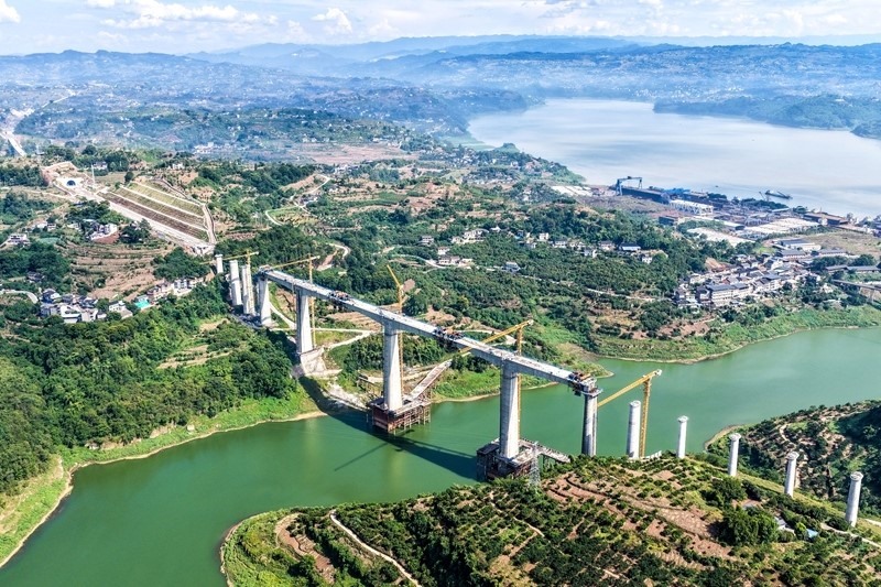 當日,由中國鐵建大橋局承建的重慶至萬州高速鐵路(渝萬高鐵)渠溪河雙線特大橋順利合龍。渝萬高鐵渠溪河雙線特大橋位于重慶市涪陵區(qū)珍溪鎮(zhèn),橫跨長江支流渠溪河,全長約953米,是全線重難點工程。