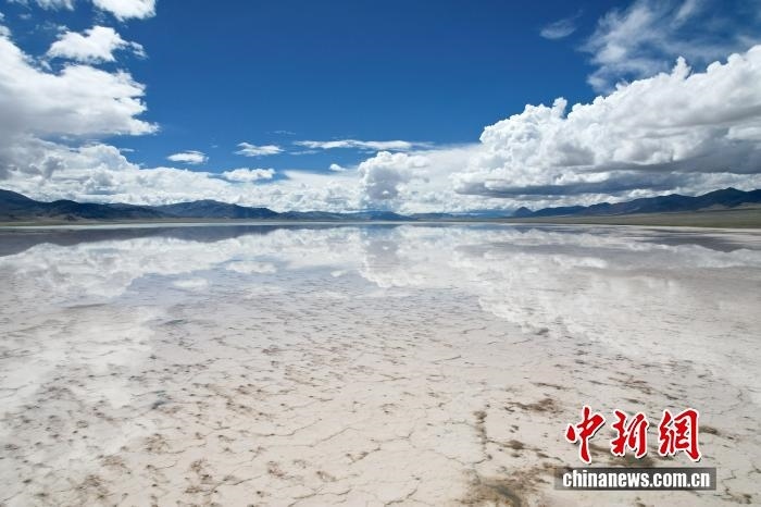 航拍西藏阿里地區(qū)革吉縣鹽湖鄉(xiāng)境內(nèi)的鹽湖。中新社記者 張祥毅 攝