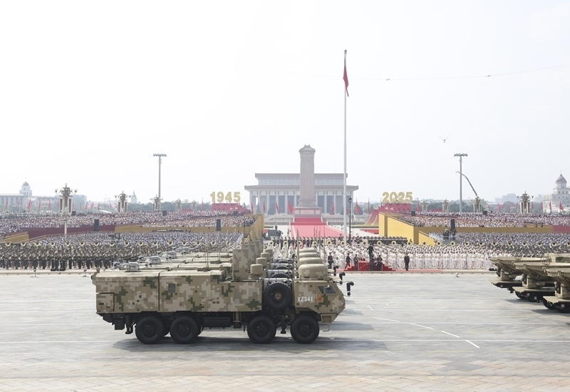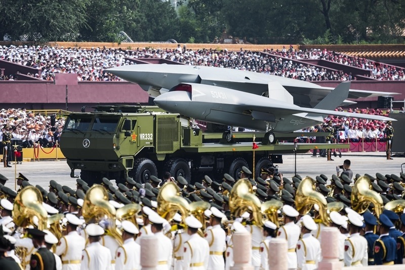 9月3日,紀(jì)念中國(guó)人民抗日戰(zhàn)爭(zhēng)暨世界反法西斯戰(zhàn)爭(zhēng)勝利80周年大會(huì)在北京隆重舉行。這是高超聲速導(dǎo)彈方隊(duì)接受檢閱。