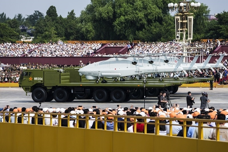 9月3日,紀(jì)念中國(guó)人民抗日戰(zhàn)爭(zhēng)暨世界反法西斯戰(zhàn)爭(zhēng)勝利80周年大會(huì)在北京隆重舉行。這是空中無(wú)人作戰(zhàn)方隊(duì)接受檢閱。