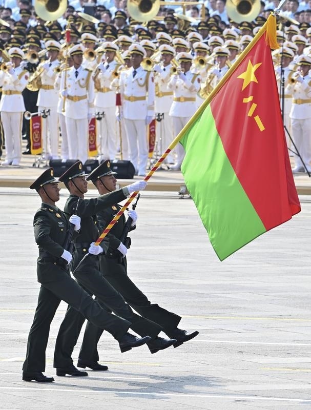 9月3日,紀(jì)念中國人民抗日戰(zhàn)爭暨世界反法西斯戰(zhàn)爭勝利80周年大會在北京隆重舉行。這是戰(zhàn)旗方隊接受檢閱。