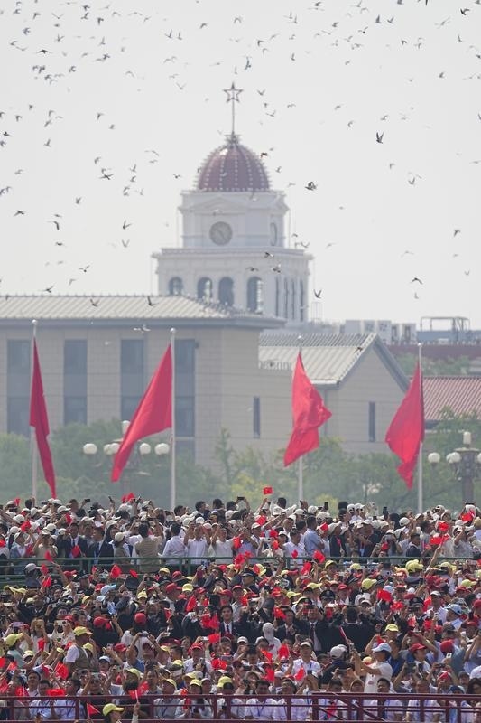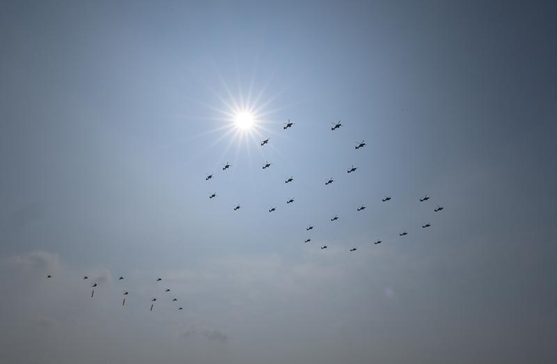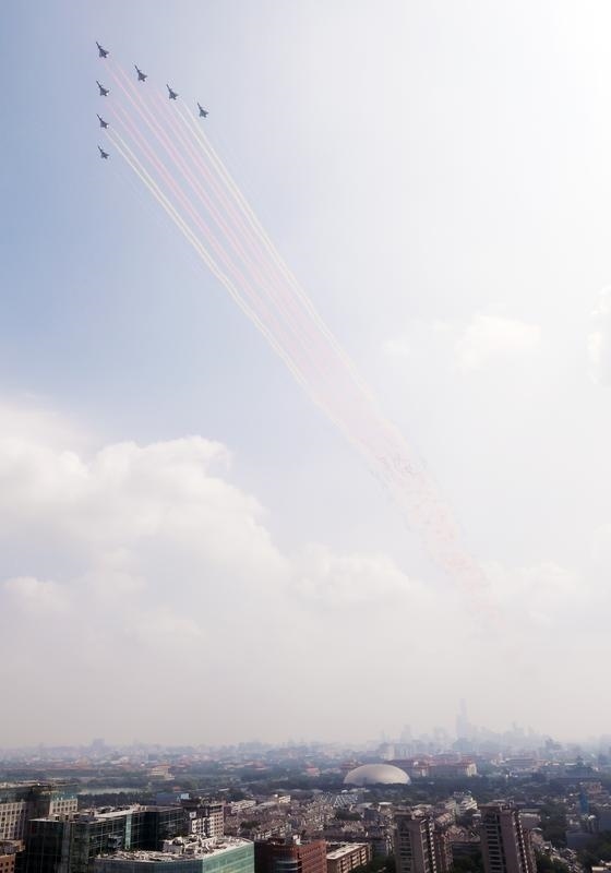 9月3日,紀(jì)念中國人民抗日戰(zhàn)爭暨世界反法西斯戰(zhàn)爭勝利80周年大會在北京隆重舉行。這是教練機梯隊接受檢閱。
