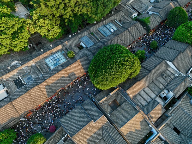 10月2日,福州三坊七巷內(nèi)游人如織(無人機照片)。