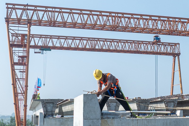 10月6日,在武漢都市圈環(huán)線高速公路孝感南段4標項目上,中鐵二十局建設者進行施工作業(yè)。