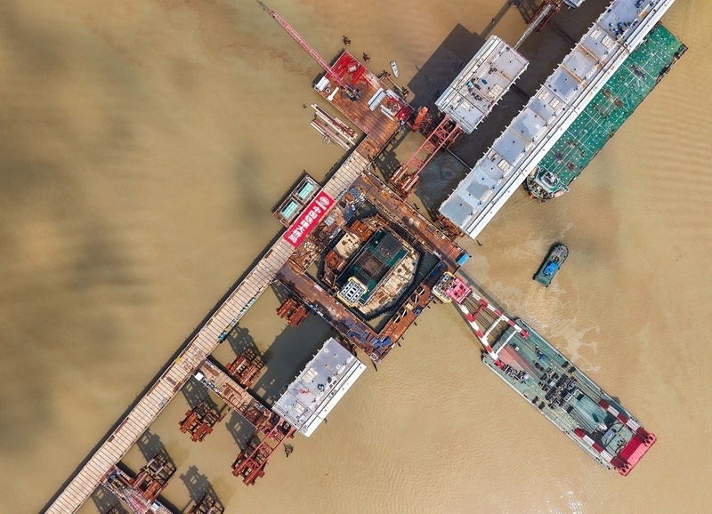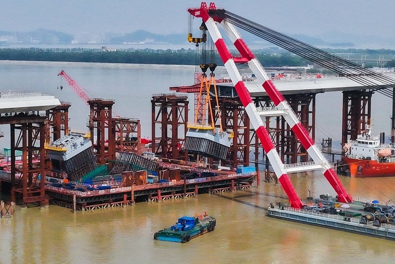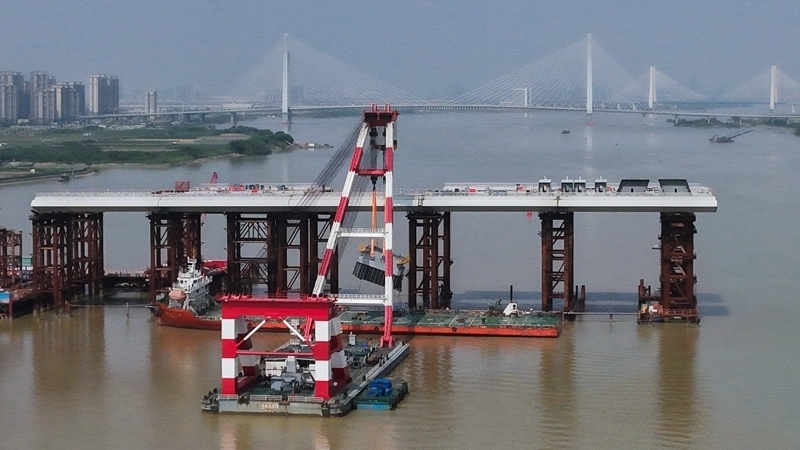 10月10日,由中鐵建大橋局承建的萬龍大橋吊裝架設(shè)首節(jié)段主塔。位于廣州南沙區(qū)的萬龍大橋跨越珠江口龍穴南水道,全長5146米,主橋長1150米,主跨608米,為粵港澳大灣區(qū)又一世界級(jí)橋梁。