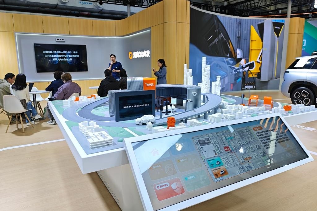 在滴滴自動(dòng)駕駛展臺(tái),智能沙盤展示全無人Robotaxi運(yùn)營(yíng)場(chǎng)景。新華社記者 唐詩凝 攝