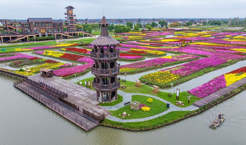 10月17日,游客在江蘇省興化市千垛景區(qū)賞菊游玩(無人機照片)。