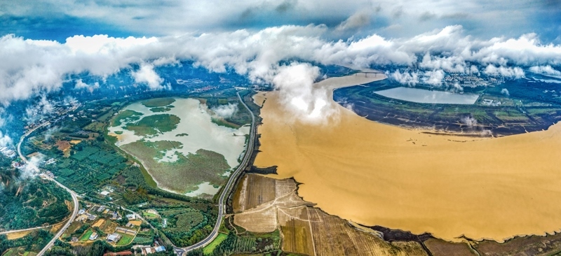 10月17日在山西省運城市平陸縣境內(nèi)拍攝的黃河云海景觀。