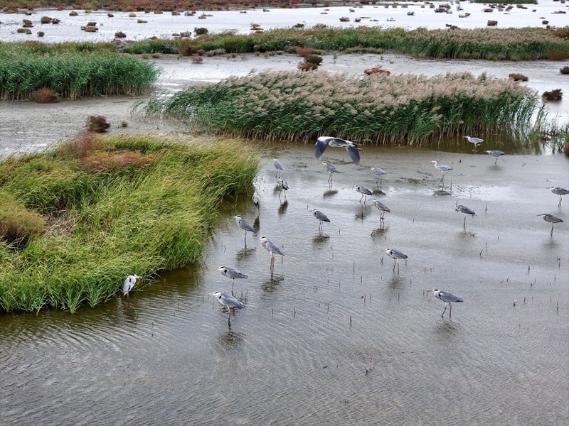 10月17日,在江蘇省泰州市姜堰區(qū)溱湖國家濕地公園,一群麋鹿在棲息、覓食(無人機照片)。