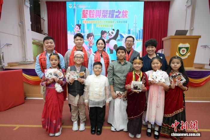 在香港油麻地街坊會(huì)學(xué)校,四川省大熊貓國家公園文化創(chuàng)意創(chuàng)新聯(lián)盟副秘書長畢飛向?qū)W生們科普四川生態(tài)及大熊貓保育知識(shí)。代表團(tuán)還向?qū)W生派發(fā)文創(chuàng)貼紙,為體育與大熊貓主題書籍簽名。代表團(tuán)也和同學(xué)們一起參觀第十五屆全國運(yùn)動(dòng)會(huì)主題展板。