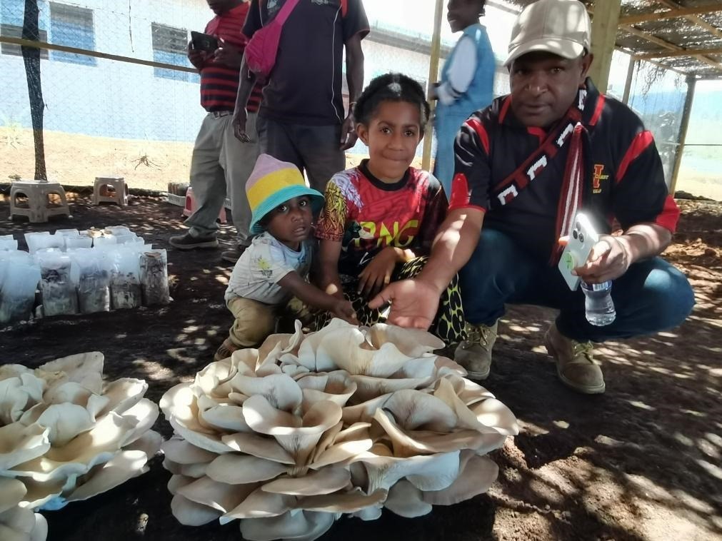 △2025年9月29日,在巴布亞新幾內亞東高地省首府戈羅卡市,當地民眾參觀中國援巴布亞新幾內亞菌草旱稻項目永久性示范基地。