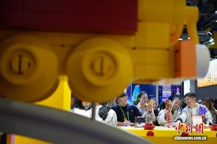 11月6日,上海,第八屆中國國際進(jìn)口博覽會消費品展區(qū)人氣旺。圖為樂高展臺吸引參觀者。中新社記者 蔣啟明 攝