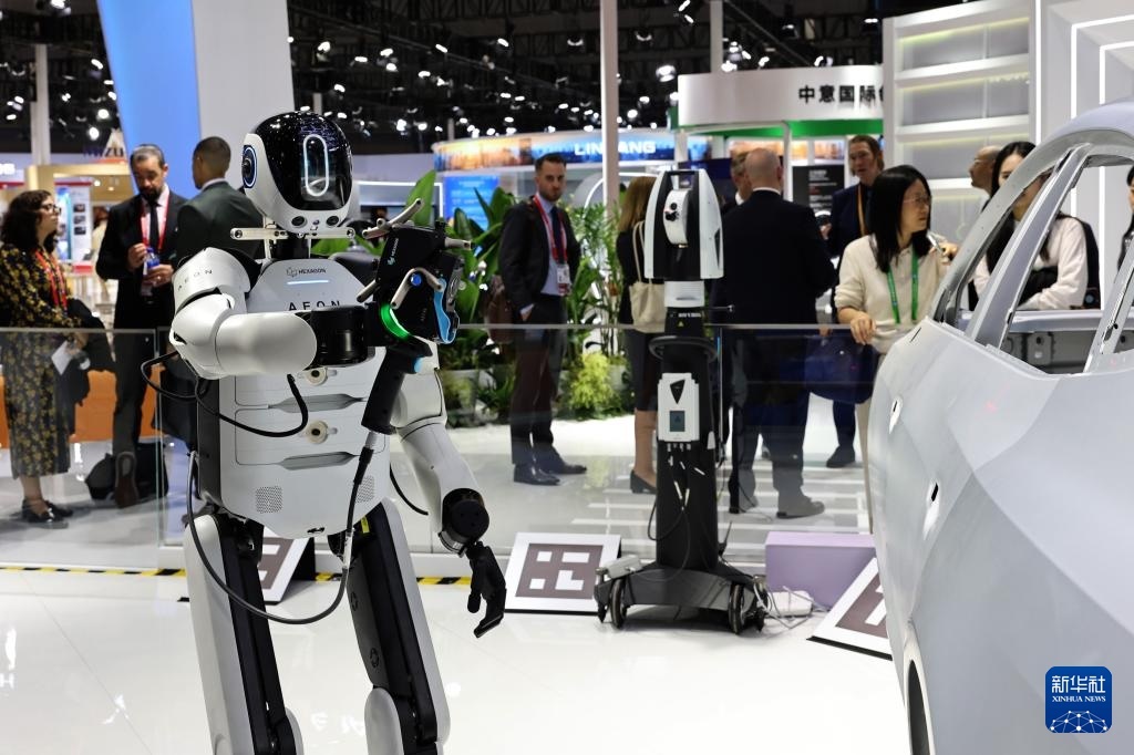 11月5日,一個海克斯康A(chǔ)EON工業(yè)人形機器人在展臺上進(jìn)行三維掃描作業(yè)演示,這也是該型號機器人工業(yè)自動化應(yīng)用場景的中國首展。