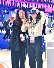 觀眾在第八屆進博會醫(yī)療器械及醫(yī)藥保健展區(qū)體驗智能眼鏡。新華社發(fā)