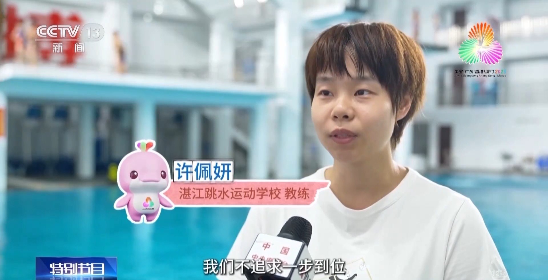 湛江跳水運(yùn)動(dòng)學(xué)校教練 許佩妍:我們不追求一步到位,因?yàn)槲覀兒芏嗪⒆佣际呛_呴L(zhǎng)大的,喜歡追波逐浪,那么他們來(lái)了以后,我們先讓他們愛(ài)上水,愛(ài)上跳躍,正是這份興趣成為他們成長(zhǎng)最大的基礎(chǔ)。