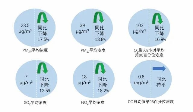 10月,全國339個(gè)地級(jí)及以上城市PM2.5平均濃度為23.5微克/立方米,同比下降17.5%;PM10平均濃度為39微克/立方米,同比下降18.8%;O3平均濃度為103微克/立方米,同比下降16.9%;SO2平均濃度為7微克/立方米,同比下降12.5%;NO2平均濃度為18微克/立方米,同比下降18.2%;CO平均濃度為0.8毫克/立方米,同比持平。