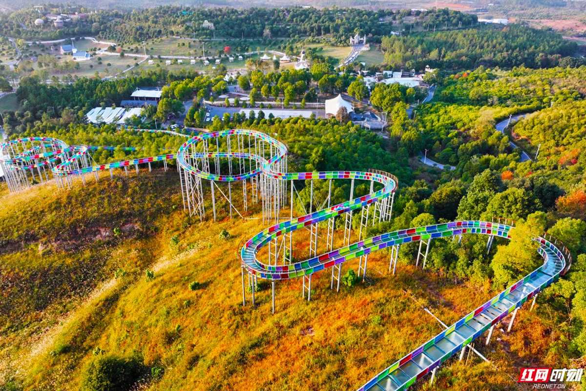 高空漂流、七彩滑道等網(wǎng)紅項(xiàng)目嵌于山林之間。
