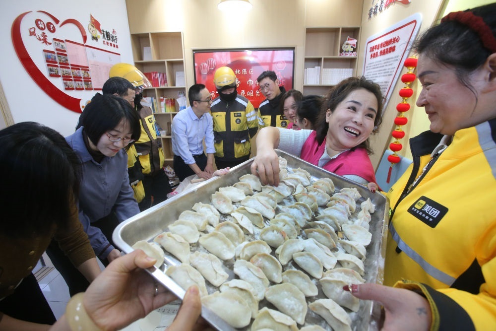 天津工會(huì)組織舉辦新就業(yè)形態(tài)勞動(dòng)者慰問活動(dòng)。新華社發(fā)