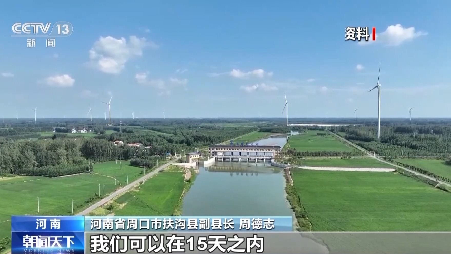河南省周口市扶溝縣副縣長 周德志:發(fā)生旱情的時候,我們可以在15天之內(nèi),把全縣的干支渠蓄滿水,最高時候可達(dá)到7000萬立方米,有效緩解旱情。汛情的時候,我們兩天之內(nèi)可以把田里的水全部排空,真正能做到旱能澆,澇能排。