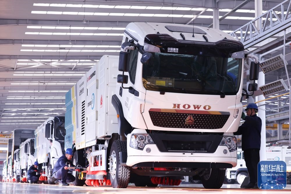 ↑ 12月15日,在河北省石家莊市的冀中裝備石煤機公司,工人在組裝新能源環(huán)衛(wèi)車。新華社發(fā)(梁子棟攝)
