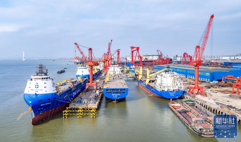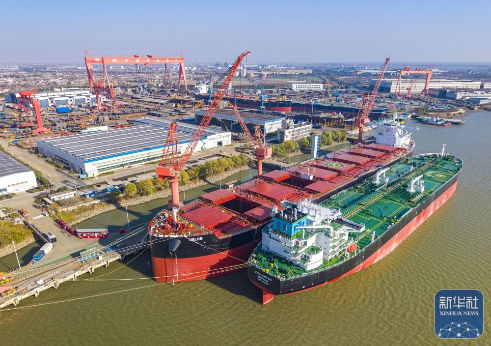 ↑ 這是12月14日拍攝的位于江蘇省江都經(jīng)濟開發(fā)區(qū)的揚州中遠海運重工有限公司生產廠區(qū)(無人機照片)。新華社發(fā)(任飛攝)
