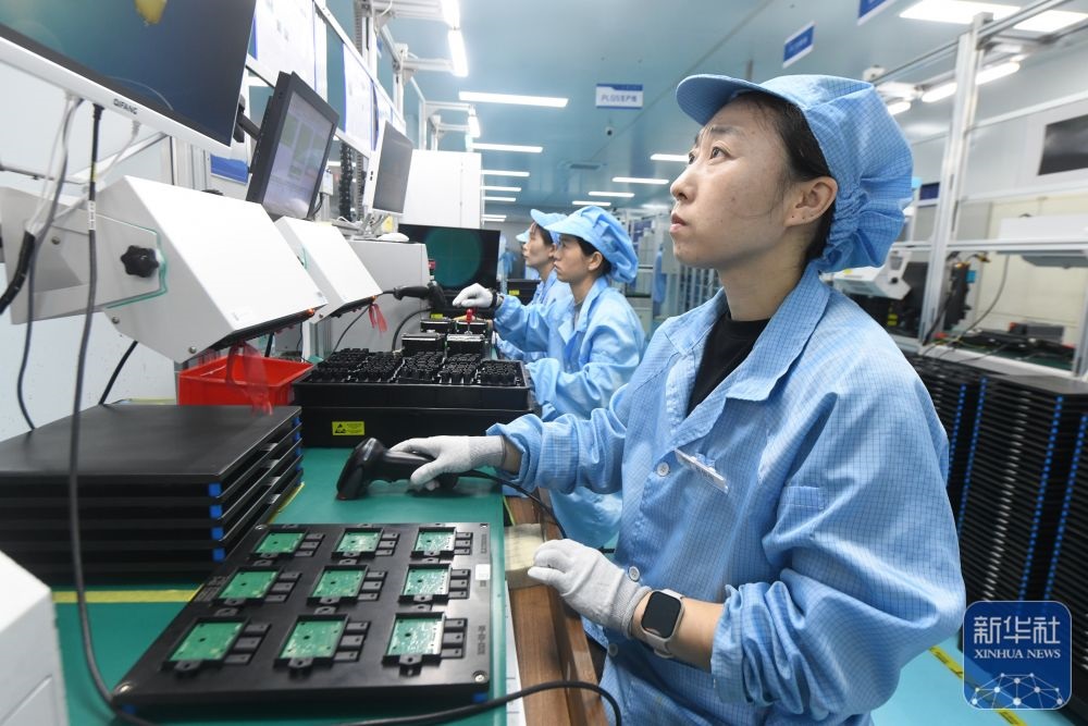 ↑ 12月15日,在河北省石家莊新樂市東方久樂汽車電子(上海)股份有限公司新樂分公司生產車間,工人加緊生產出口訂單。新華社發(fā)(賈敏杰攝)