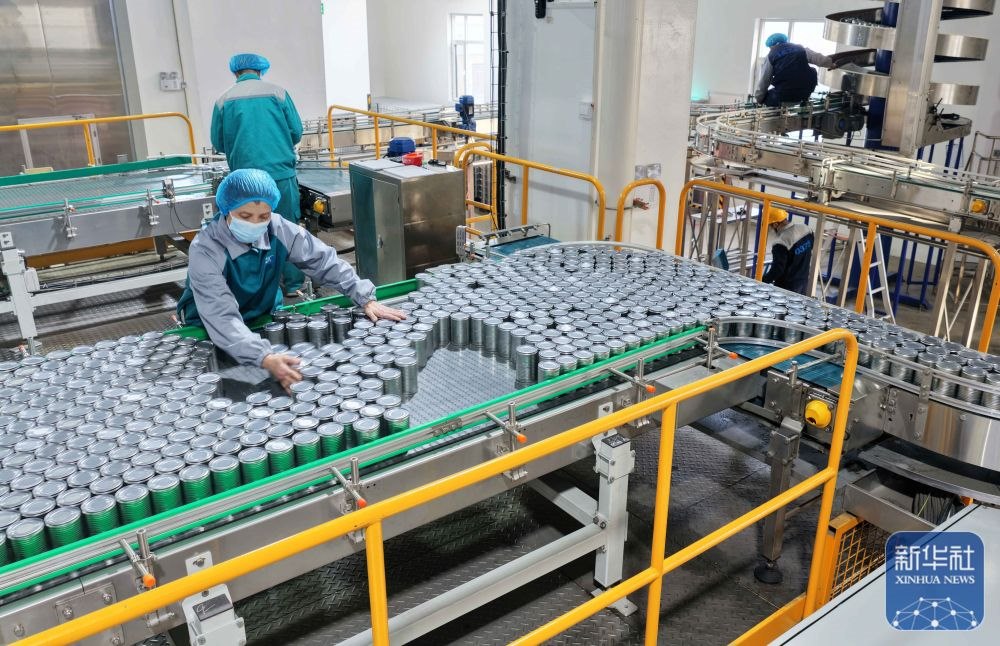 ↑ 12月15日,工人在山東省臨沂市沂南縣銅井鎮(zhèn)寵物食品產業(yè)園寵物食品生產線忙碌。新華社發(fā)(王彥冰攝)