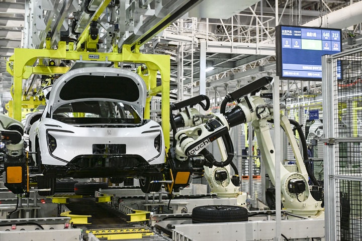 2025年3月6日在位于重慶的長安汽車數(shù)智工廠總裝車間拍攝的自動(dòng)化生產(chǎn)作業(yè)現(xiàn)場(chǎng)。新華社記者 王全超 攝
